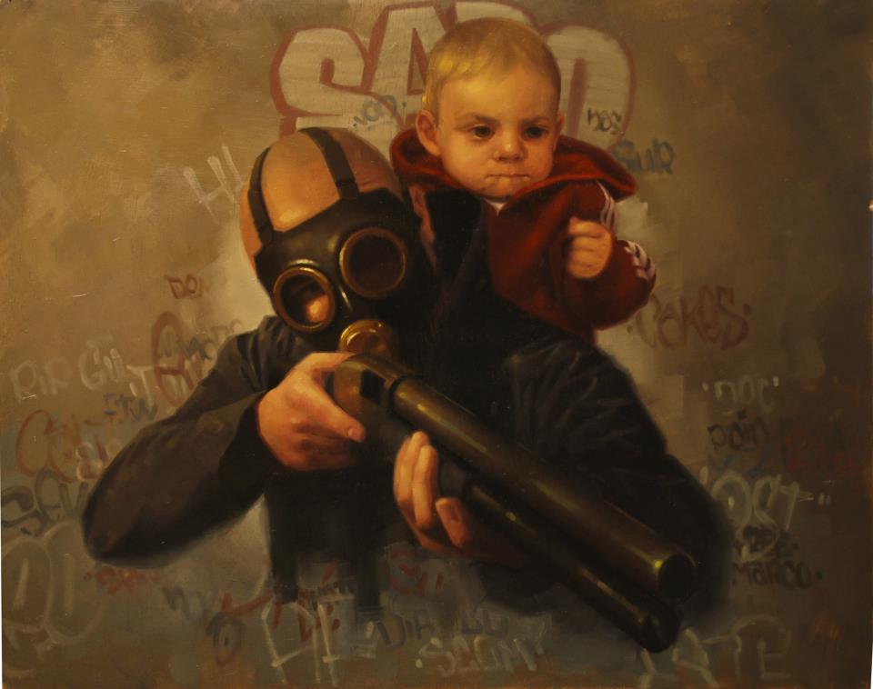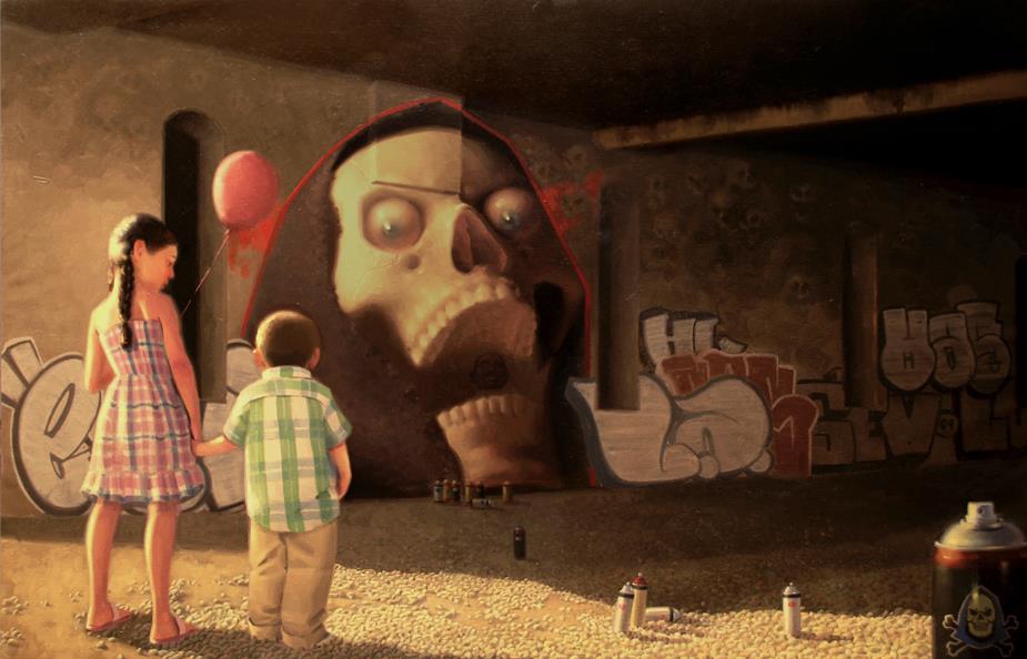 Following in the footsteps of artists like William Bougureau, Charles Bargue, and Norman Rockwell, I am bringing to life the stories of my world. However, unlike other classical artists, both present and past, I use graffiti to help complete the story within my paintings. Stories of humour, sadness, love, despair and everything in between.