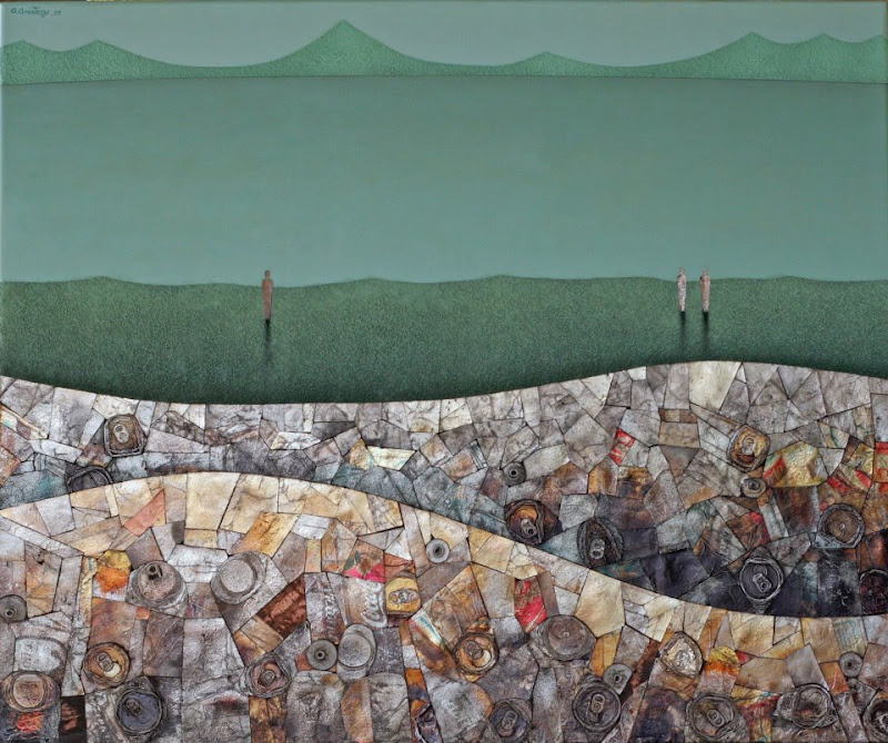 Alejandro Ar贸stegui is without a doubt one of the great activists of all time for Nicaraguan painting and a compelling reference in Central American contemporary art. For decades, his crushed cans and collaged objects are the focus of his imagery and are included in many private and public collections. He used trash in his art long before the trend for being green existed, not as endorsement for recycling, but as indignation.