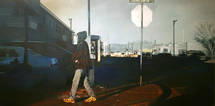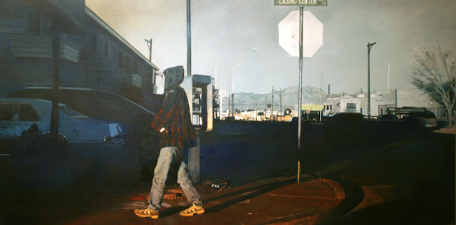 I have used two kinds of canvas in this series. One absorbs the paint more than the other, and the former lacks the dazzling white primer of the latter. The least absorbing one forces painting by jerky strokes, while the white primer makes the brush slide in a more flowing manner. I paint mechanically, like a brainless person. I invent games to stay alert, to keep my attention on the canvas during the painting process. I can paint and consider definitively finished some areas the size of a typing sheet of paper, that are far apart, while the rest of the canvas remains empty. I can make a grid on one or two canvases and pretend that I paint the pictures following a geometric pattern. I can paint the canvas like someone who writes a story, from left to right and from top to bottom. Anything to avoid the tremendous anxiety I feel from painting like a machine.
