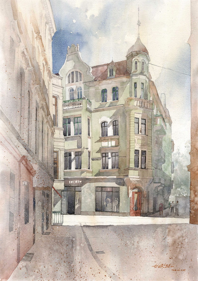 “During my studies at the Warsaw University of Technology, Poland, I learnt a lot about watercolors. Although the faculty of Architecture at this university has a strong tradition in drawings and watercolors, but most of my skills are gained from my own study and personal interest in this medium, and from friends who also work with watercolors.”