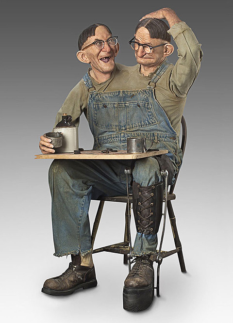 There are high-detail life sculptors out there who provide an awesome caliber of realism; sculpture so life-like that even under the closest scrutiny you expect it to move. This kind of art requires the mastery of many mediums, and while I strive to achieve that mastery, realism is secondary to the focus of the work. I want to tell wild stories in a single three-dimensional portrait and literally flesh out a biography with hair, clothing, trinkets, teeth and fingernails, etc. To me, what is most important is to create "the character" first and foremost, because all of the special effects in the world can't save you if you start with a lousy script.