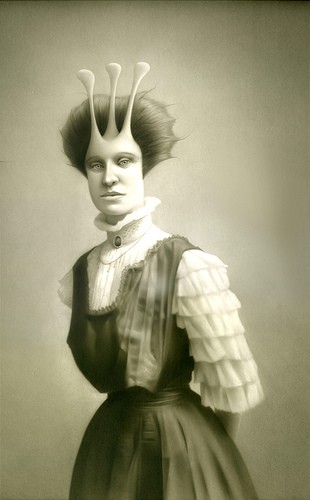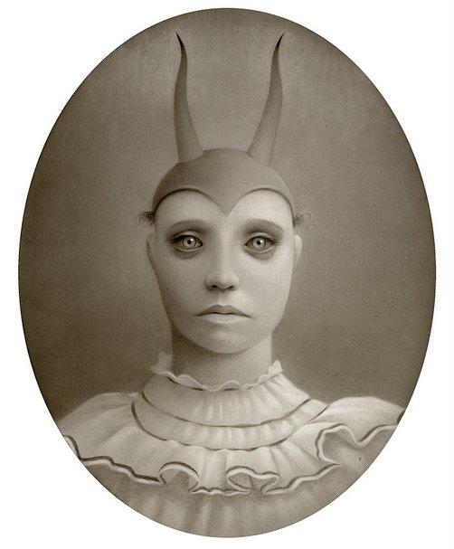 The influences for his work are many; the genre films, his fascination with human oddities, circus sideshows, old Vaudeville magic acts, Victorian portraits, and things otherworldly, are all blended together to enable him to bring life to the characters and stories he writes in his journals