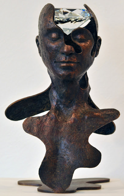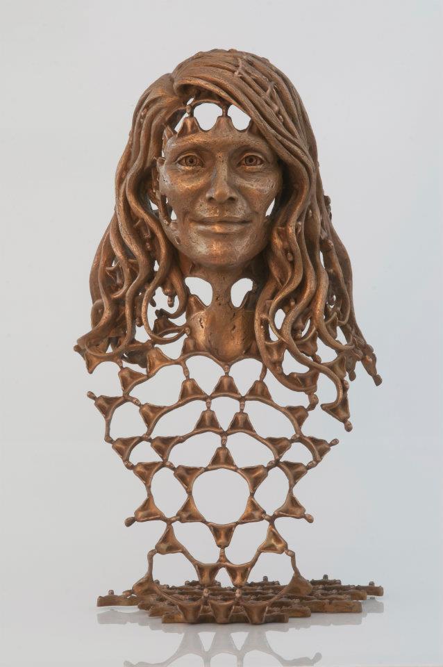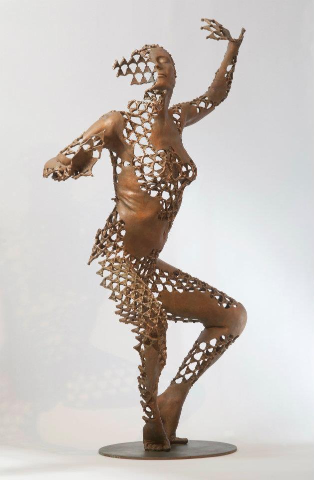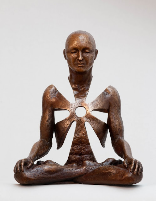 Sukhi's sculptures are intended to bridge the cultures of East and West. Embodying the peace and compositional balance of ancient devotional art, they represent complex philosophical ideas with a simplicity and clarity that renders them accessible to the Western viewer. Exploring themes of hidden potentials, and the transcendence of our limiting view of a solid reality, her work often represents the negative space as being as important as the material itself, implying the dance of form and spirit, a constant state of transformation.