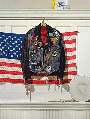 By 1986, when David Brega had his first exhibition, the scholarship of American still life painting—and its markets—were well established. He could visit museums to see paintings by William Harnett, John Peto, and a host of other American artists who had come to light. Moreover, books and catalogues on these artists made their images widely available. Brega’s challenge therefore was not to break new stylistic ground but rather, to find his own way within the parameters of the trompe l’oeil tradition. He has done this by seeking out objects whose forms and historical associations touch him, by arranging them in spare, carefully wrought compositions, and by mastering a technique that is breathtakingly accomplished. At times Brega departs from his usual subject matter. In Colors, for example, he selected a rock star’s leather jacket encrusted with badges, belts, and chains—a contemporary artifact that is both a symbol of pop culture and a fascinatingly personal article of clothing. At other times he revels in the traditional boundaries of his art, pulling subject matter, composition, and trickery together with his own unique sense of humor and his original standard of beauty."