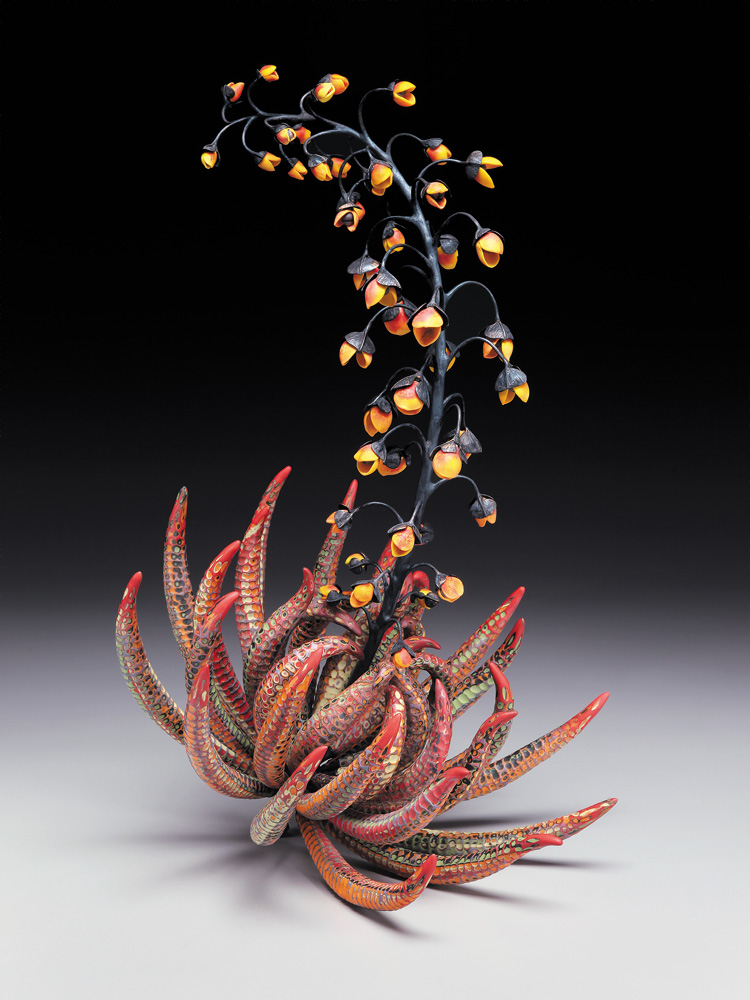 Primarily a self taught artist, Michael Sherrill moved from Charlotte, North Carolina to the Western North Carolina mountains in 1974. His primary influences came from being in the proximity of the North Carolina folk pottery tradition and the community surrounding Penland School of Crafts and the Southern Highland Handicraft Guild. Specific individuals who have influenced significantly his development include Cynthia Bringle, Don Reitz and Sid Oakley. He is a frequent instructor at Penland and has taught at craft schools and workshops across the country. Michael has always been a bit of an inventor and in 1995 he designed a line of tools for potters and sculptors—the birth of Mudtools®. In 2002, Michael was a featured presenter and lecturer at the U.S. Clay exhibition of the Smithsonian’s Renwick Museum of American Craft. In 2003, Michael was honored as Artist of the Year by the Mint Museum of Craft + Design, Charlotte, N. Carolina. As part of the International Ceramics Symposium/WOCEF, Michael is one of 10 artists invited to build outdoor sculptures to be placed permanently at the International Ceramic Museum in Inchon, S. Korea, in the summer of 2004.