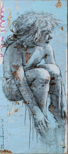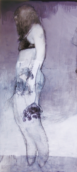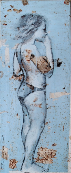 Nel levare, il gesto è tormentato eppure rigenerante, benefico, e visto che l’intonaco già carnalizza la figura, procedo “lavandola” per averla + trasparente + idea + atmosfera o sensazione non interamente definita. La mia intenzione è quella di far emergere le ferite di prima. Nell' ultima serie di quadri indago la relazione fra donnasola + uomosolo vista come impulso fisico che sacrifica la comunicazione e viceversa.