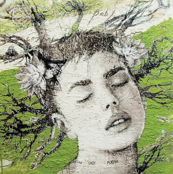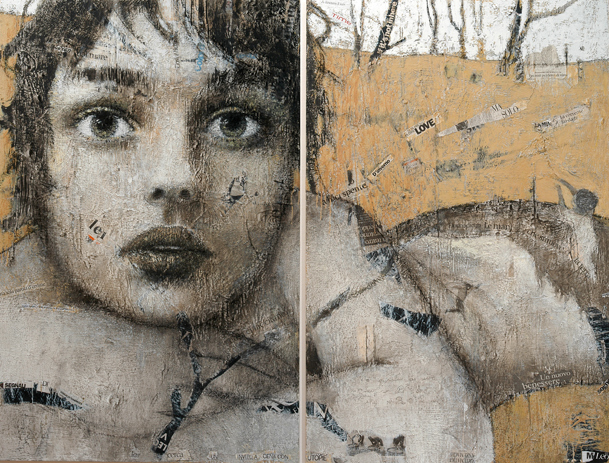 Se le ferite e le paure ci sono ma non si vedono, così è nell’opera, dove prima le incido e poi le nascondo (cicatrici). Penso che la memoria non viva nella pittura quanto nella poesia scritta, quindi per alcune paure utilizzo le parole riciclate assemblandole, in stile lettera anonima di un rapimento, in frasi dirette a contraddire l’immagine e a svelare le complessità di un’identità. Lavoro per passaggi.