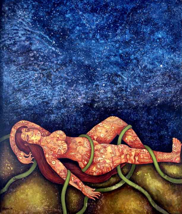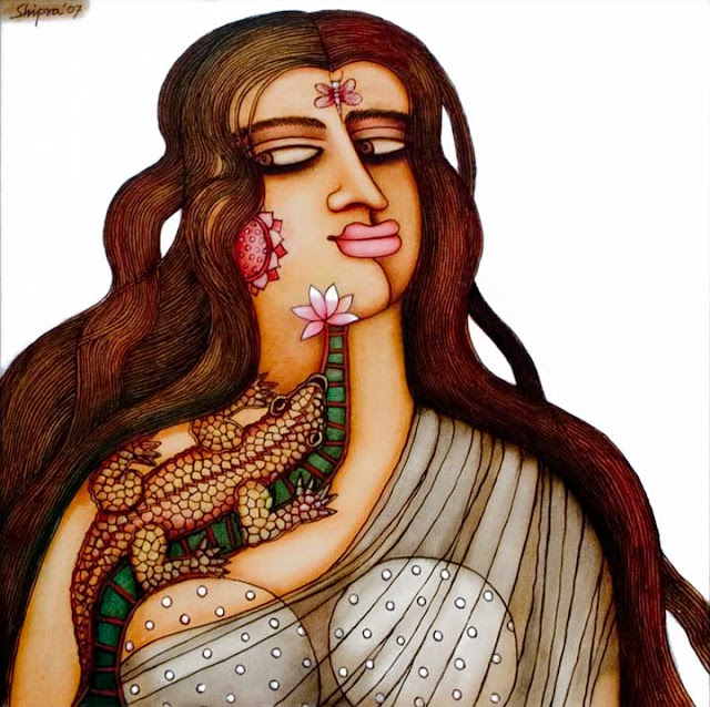 Born in 1954 in West Bengal, Shipra did her graduation from Calcutta University in 1975 and studied art at the Govt.College of Art & Craft and at the College of Visual Arts Calcutta, under guidance of Shuvaprasanna in 1977 and 1980 respectively.. Starting with her first solo show in her home town, she has held over 12 solo exhibitions across India and abroad. She has also participated in numerous group shows including at Singapore, Hong Kong, London, New York, Germany and Dubai. Four portfolios of her drawings and graphics have already been brought out and her work is held in important public, corporate and private collections both in India and abroad. She lives and works in Kolkata.