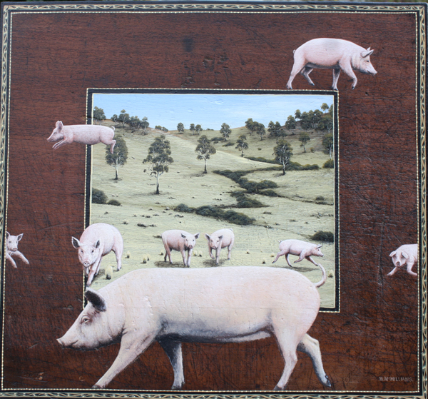 Michael McWilliam's works from his studio in Perth, outside of Launceston, Tasmania. A visual arts graduate at the University of Tasmania, his exhibition, Mixed Company, at Handmark Gallery was his 13th solo exhibition.